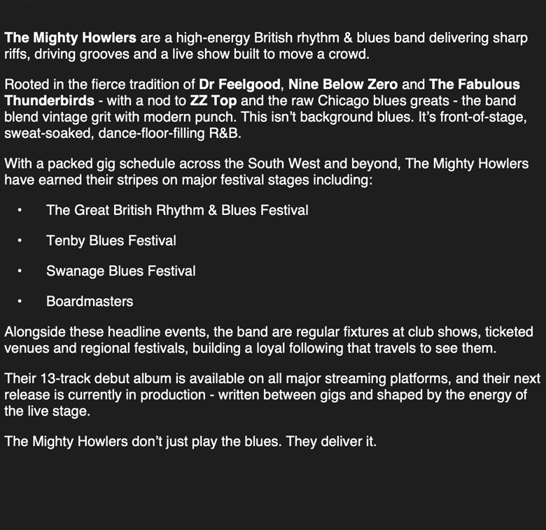 A band biograpy in rich text format